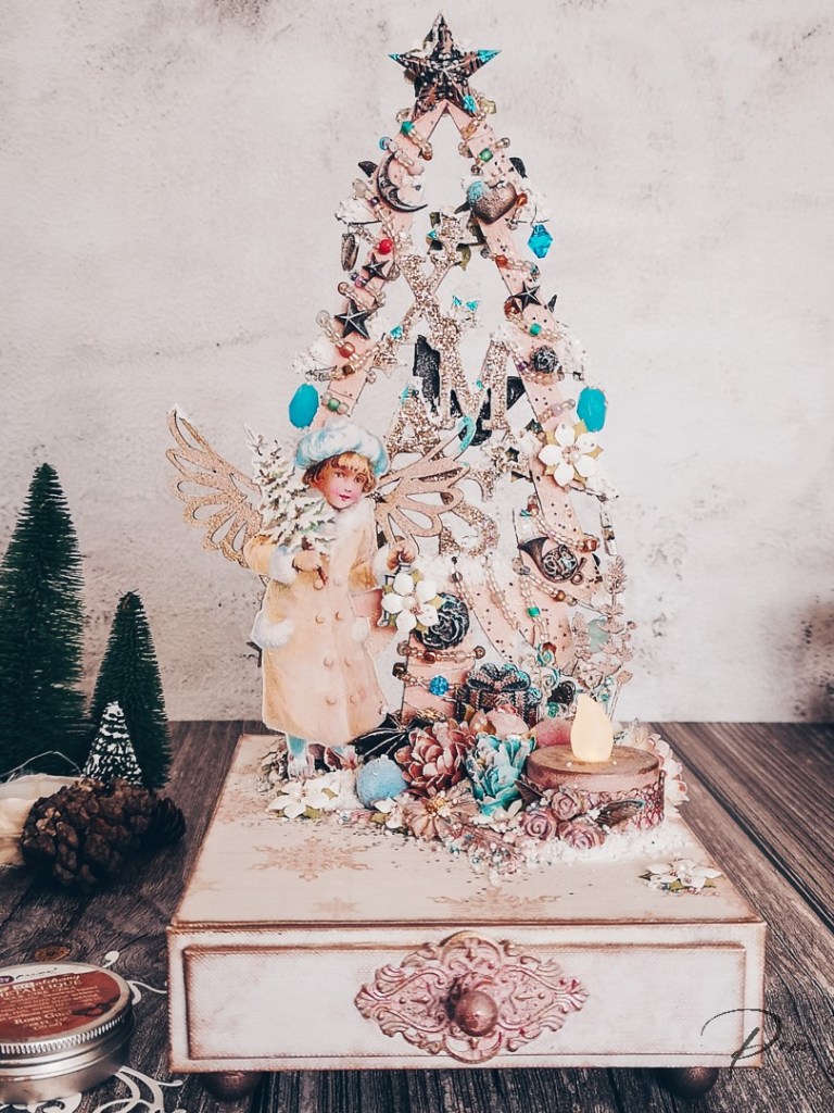 Así nació esta caja con forma de árbol de Navidad, con cartonaje desde cero y decorada con algunos productos de Finnabair.